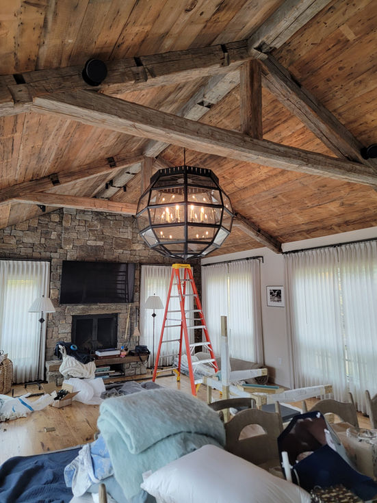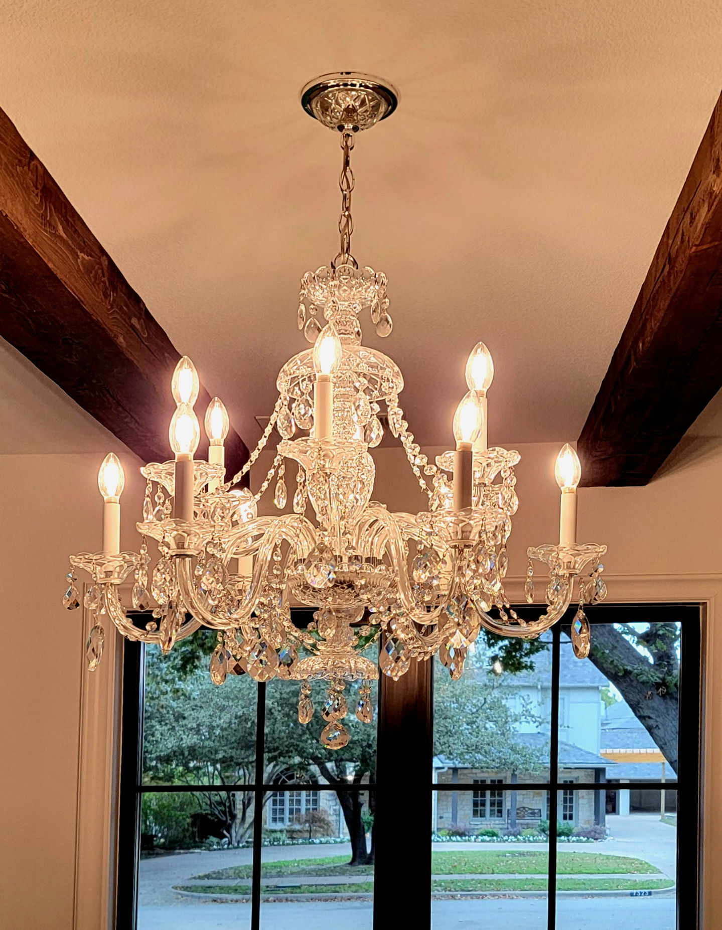Experience the luxury of elegant chandelier installations in various living and dining spaces. From crystal chandeliers with lit candles to modern chandeliers with wall art, each installation adds a touch of sophistication and style to the room.